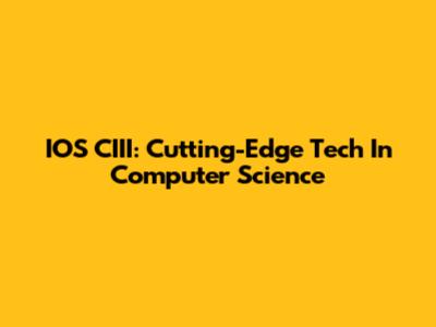 IOS CIII: Cutting-Edge Tech In Computer Science