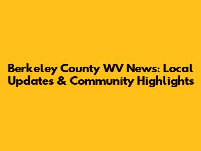 Berkeley County WV News: Local Updates & Community Highlights