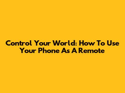 Control Your World: How To Use Your Phone As A Remote