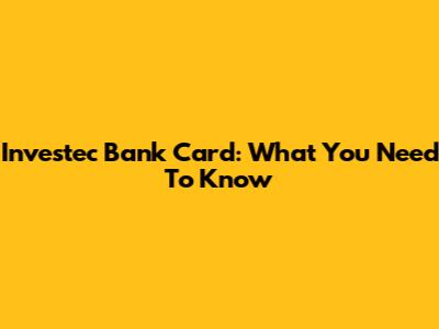 Investec Bank Card: What You Need To Know